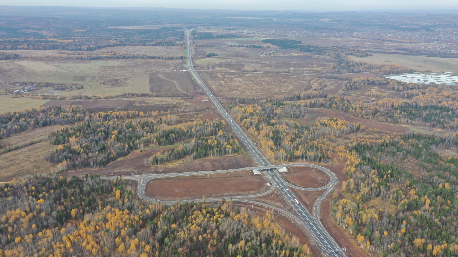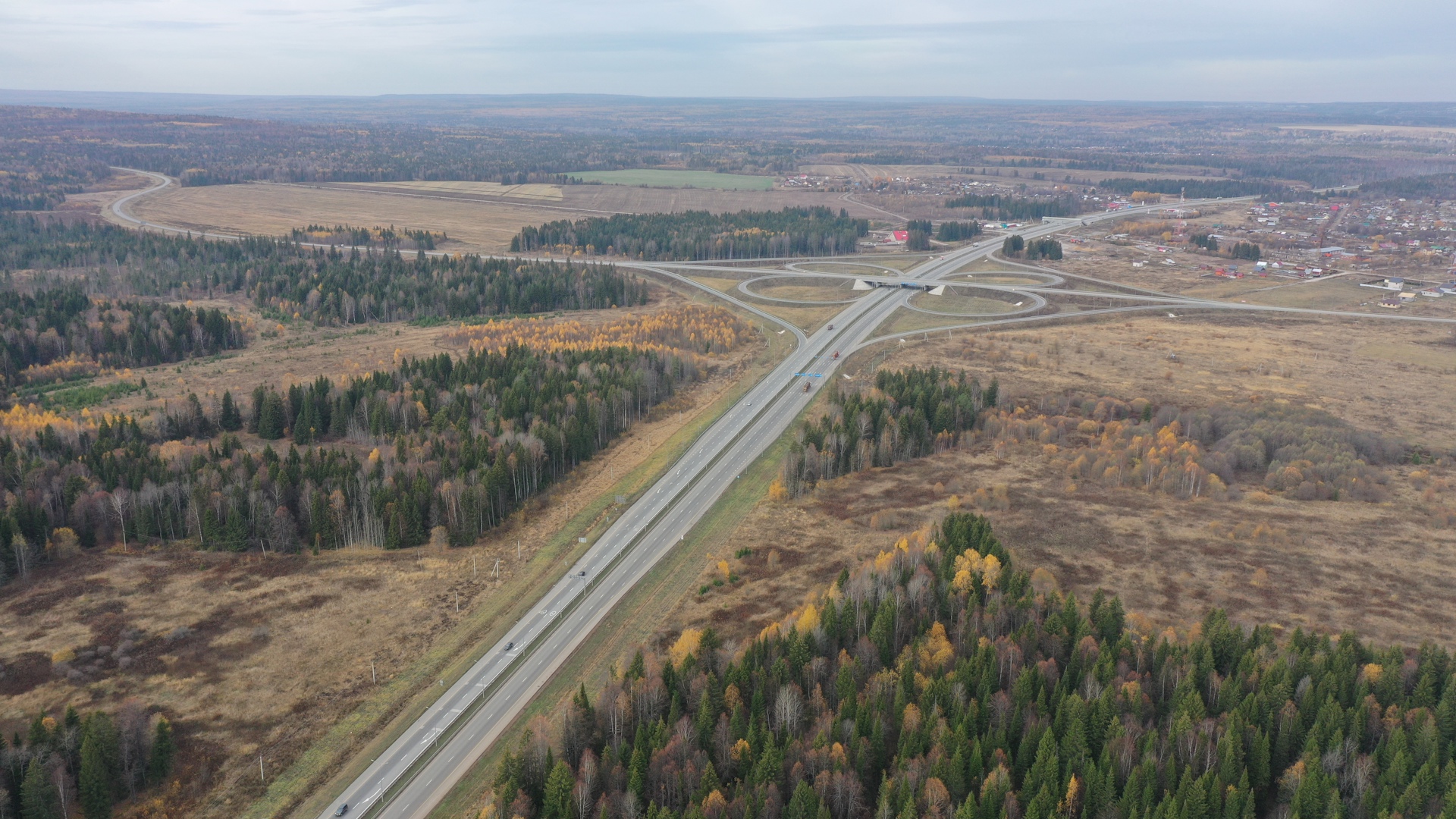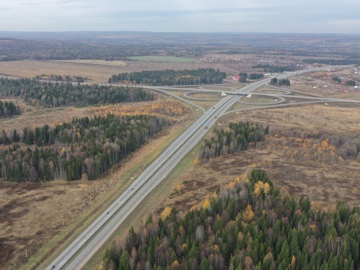 В ходе реконструкции отрезка трассы Р-242 Пермь – Екатеринбург в Пермском крае на участке г. Пермь – граница Свердловской области федеральные дорожники построили двухуровневую транспортную развязку на деревню Байболовка, два моста через реку Юмыш и два надземных пешеходных перехода, а также шесть остановочных комплексов с заездными карманами для безопасной посадки пассажиров и тротуарами.