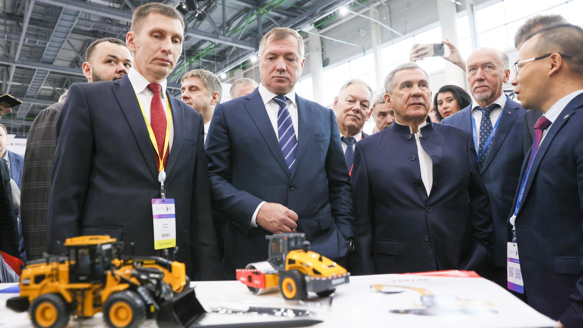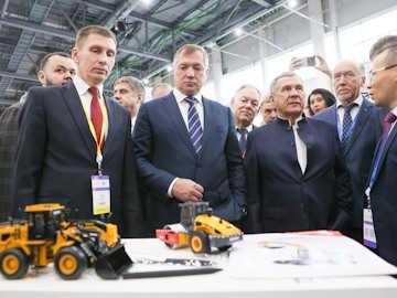На уличной экспозиции и в первом павильоне гости мероприятия осмотрели автодорожную технику и оборудование, основная часть которых произведена отечественными компаниями. Не обошли вниманием и стенды, иллюстрирующие российско-китайское партнерство. На одном из них, где представлено предприятие, осваивающее сегодня китайские производственные мощности, представители компании сообщили, что сегодня на предприятии в Татарстане 30 % оборудования ‒ исключительно российское. Президент Республики Рустам Минниханов пожелал, чтобы в ближайшем будущем этот объем приблизился уже к 65-70 %.